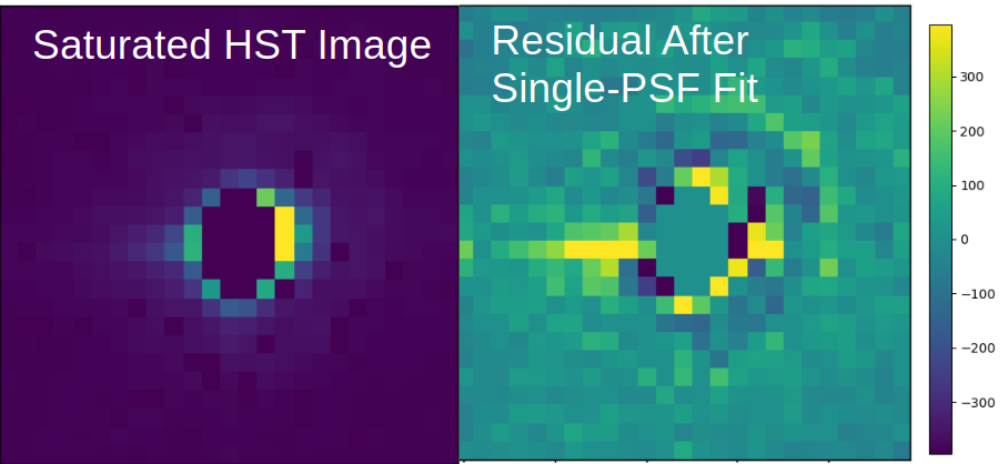 I use empirical PSF-fitting on HST/ACS, adapted to saturated and non-linear data, to search for young gas giants in star-forming regions. This work is still in preparation, but the preliminary results are shown below. Results will be published in 2026. I anticipate improved performance with applications to JWST data.