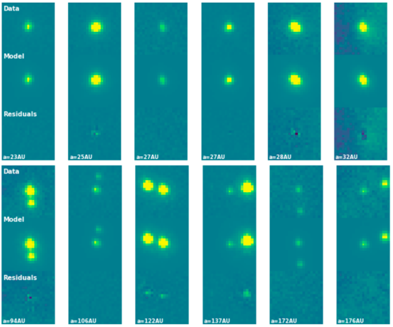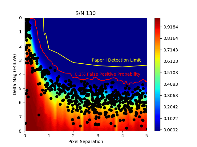 Space-based, diffraction limited, wide-field imaging allows for the efficient characterization of multiplicity within a dense stellar population. With Hubble Space Telescope (HST) data, I developed a double point-spread function (PSF) fitting algorithm that utilizes empirically derived PSF models and exhibited its sensitivity to companions at sub-pixel and sub-diffraction limit scales on the Advanced Camera for Surveys (ACS). With HST/ACS mosaics in the Orion Nebula Cluster (a high-mass, high density star-forming region), I identified dozens of companions (see Fig. 2) to low-mass stars (0.1-0.4 solar masses) down to 10 au in separation, see Fig. 1. With my Bayesian demographic analysis, I showed that the companion population to low-mass stars in the ONC is consistent with the Galactic field population, as is the mass ratio distribution. While companions in Taurus (a low density star-forming region) may be more frequent than the field, my results demonstrate that dynamics in high density regions may sculpt the companion population, disrupting only the widest most weakly bound companions during states of very high density. Further information can be found in two ApJ publications, here and here.